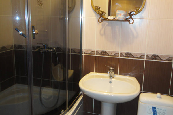 2 осн. места. 2 доп. места. Балкон. Мебель: вешалка, диван, зеркало, кресло, кровать двуспальная, кухонная мебель, набор мягкой мебели, прикроватные тумбочки, стул, тумба под телевизор, шкаф встроенный, шкаф для посуды. Мини-кухня. Оборудование: микроволновая печь, набор посуды, телевизор, холодильник, чайный набор посуды, электрочайник. Санузел: с душем, туалетные принадлежности. Сервис: смена полотенец, смена постельного белья, уборка номера.